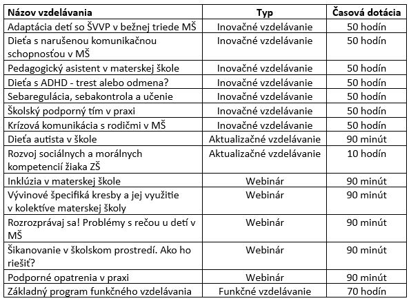 | Určené pre | pedagogických a odborných zamestnancov, resp. vedúcich zamestnancov škôl |
