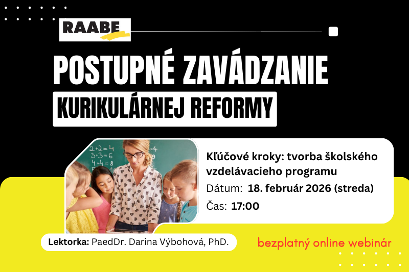 Obsah webinára:  Témou webinára je postupné zavádzanie nového Štátneho vzdelávacieho programu pre základné vzdelávanie (ŠVP ZV). Obsah tvoria podmienky, odporúčané postupy a dostupná podpora implementácie zmien do školských vzdelávacích programov (ŠkVP) v súlade s realizovanou kurikulárnou reformou. Pre porozumenie jednotlivých súčastí budú použité zverejnené ukážky ŠkVP z pilotných základných škôl zapojených do procesu implementácie kurikulárnej reformy.