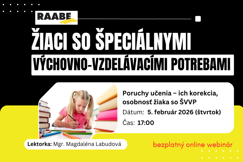 Pre koho webinár odporúčame: Pre všetkých, ktorí majú v starostlivosti deti so ŠVVP, majú snahu im uľahčiť vzdelávanie a zabezpečiť im psychické zdravie, teda pedagógovia, rodičia, začínajúci špeciálni pedagógovia, vychovávatelia, tréneri...